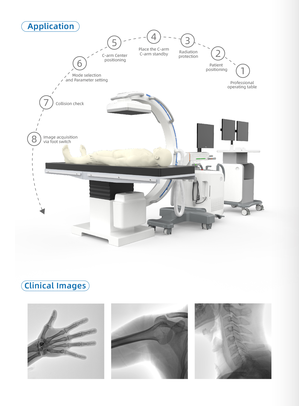 يتميز بتصميم ذكي يناسب المساحات المختلفة، وحجم الفتحة الكبير يلبي احتياجات أنواع مختلفة من المرضى، كما توفر اللوحة المسطحة الرقمية عالية الدقة معلومات صور عالية الدقة.
