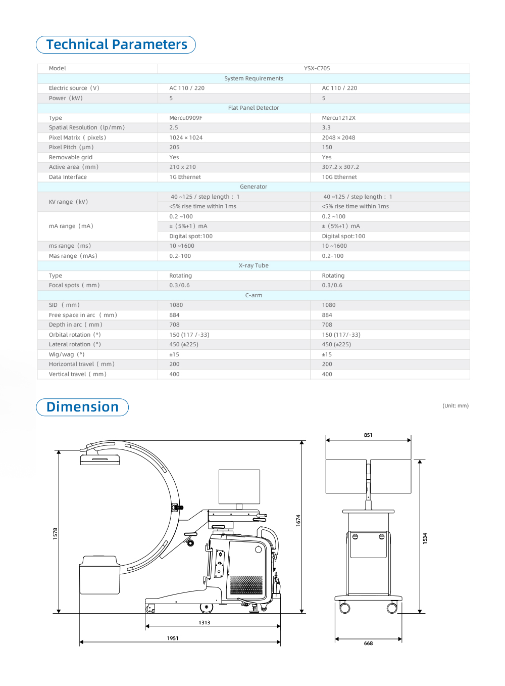 جهاز الأشعة السينية المتنقل ذو الذراع C طراز YSX-C705