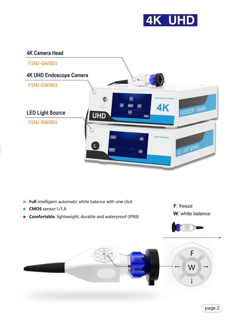 نظام كاميرا التنظير الطبي YSENMED بدقة 4K UHD YSNJ-GW001