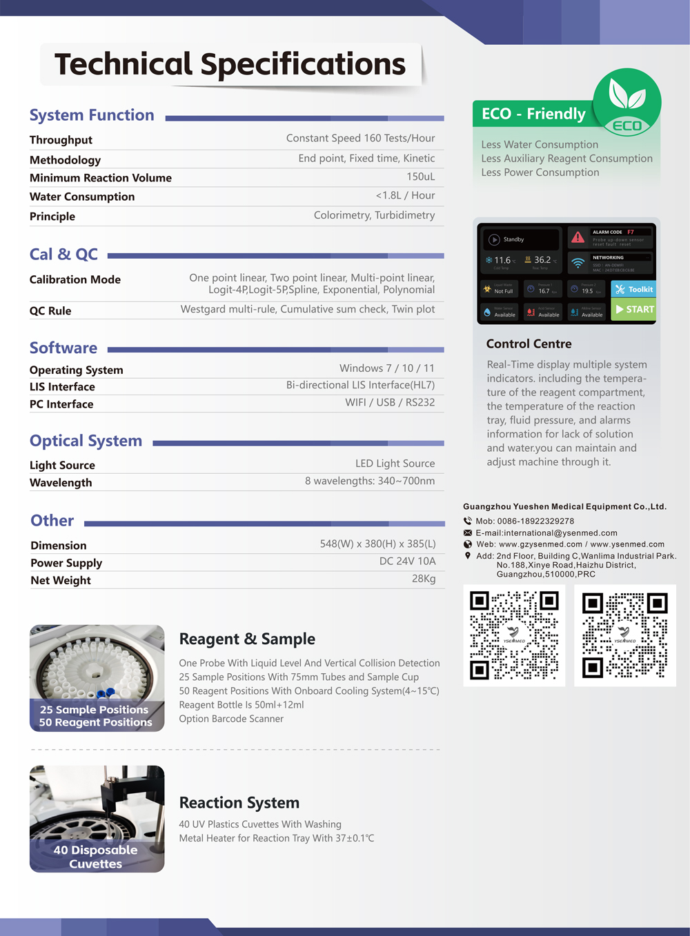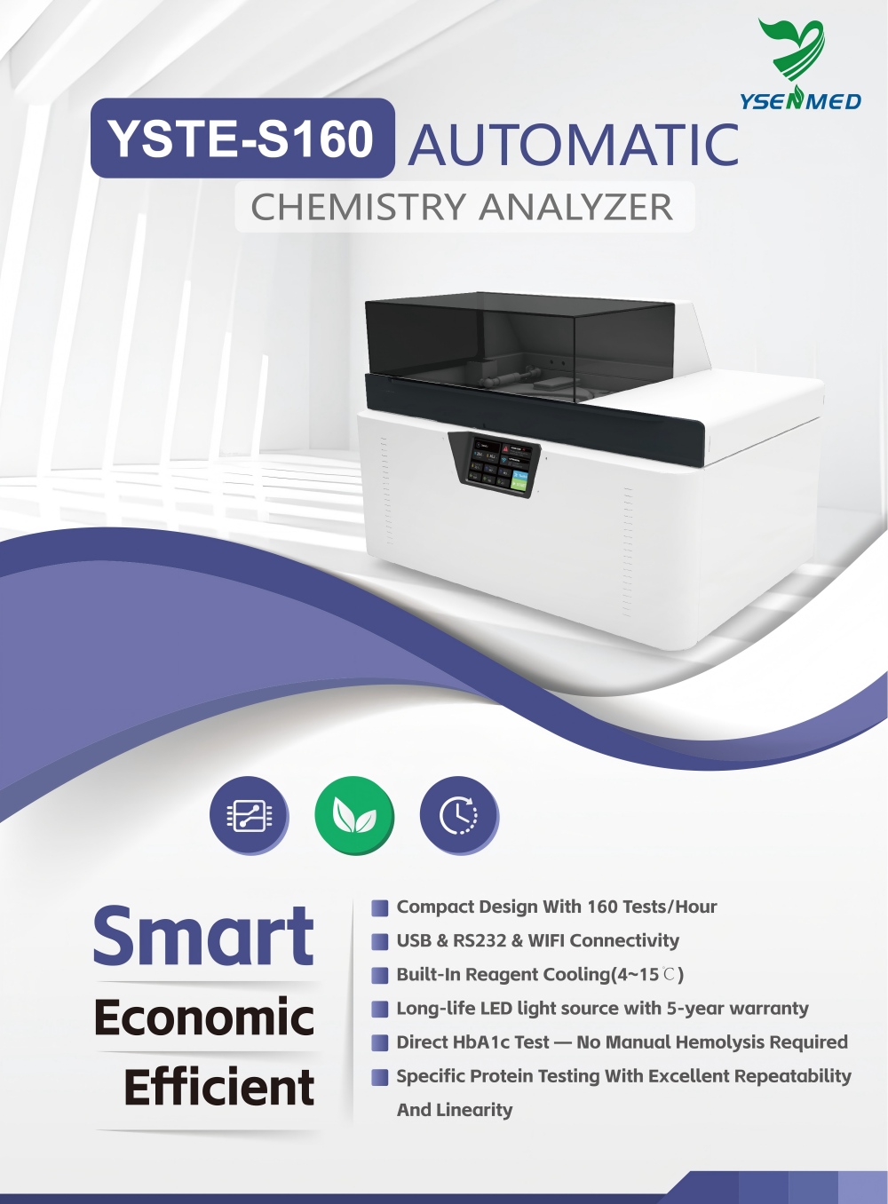 Analizador bioquímico totalmente automático YSTE-S160, con capacidad para 160 pruebas por hora.