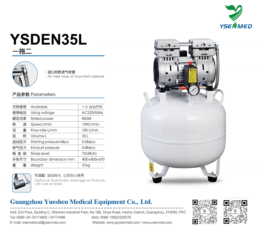 Compresor de aire dental YSDEN35L de 35 litros