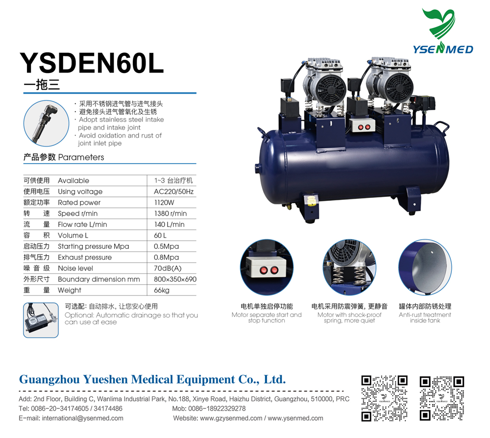 Compresor de aire dental YSDEN60L de 60 litros