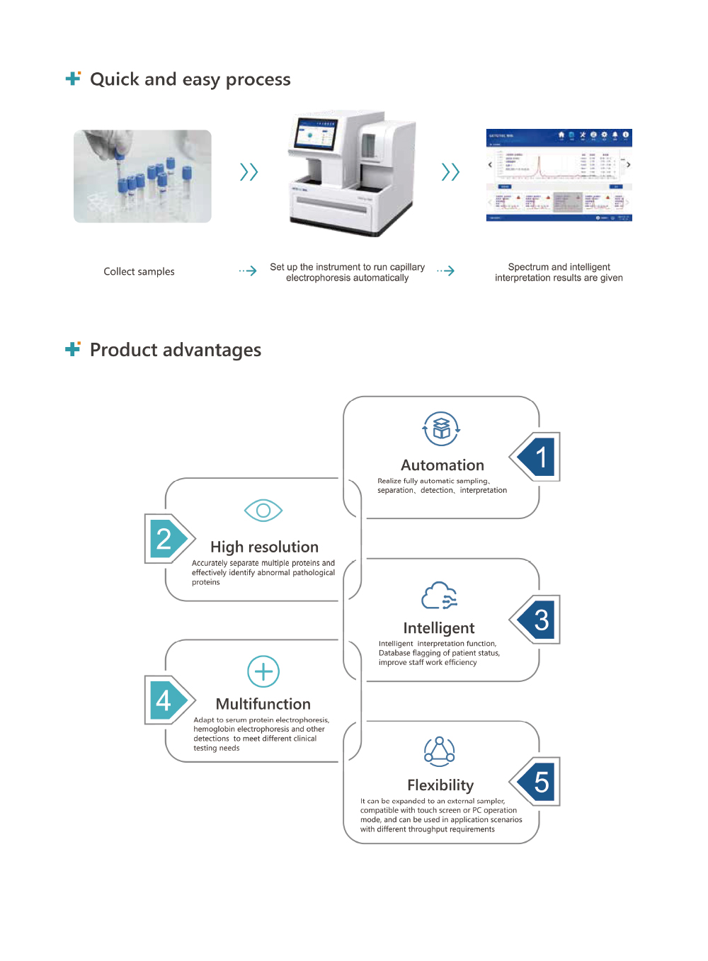 Fonctionnalités intelligentes : fonction d'interprétation auxiliaire intelligente, alerte automatique en cas de résultats anormaux, améliorant l'efficacité du travail du personnel.