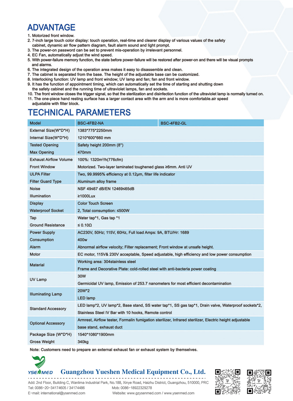 Armoire de sécurité biologique certifiée NSF classe II B2 BSC-4FB2-NA