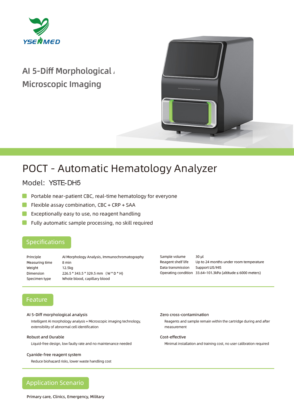 5-Part CBC CRP SAA Automated Dry Hematology Analyzer YSTE-DH5