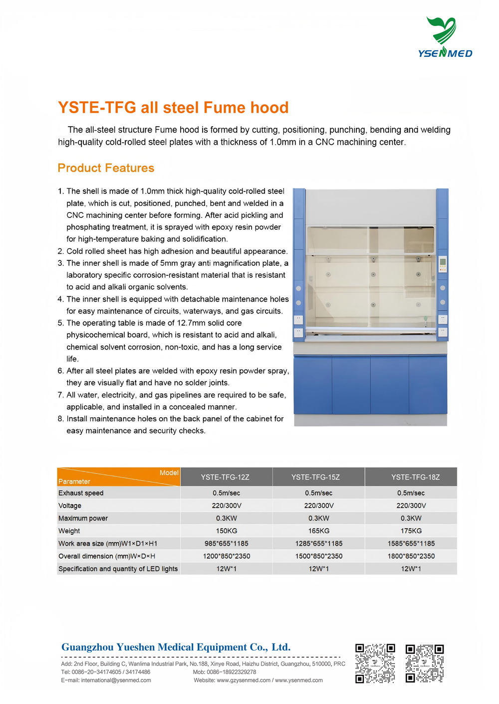 All Steel Laboratory Exhaust Chemical Fume Hood YSTE-TFG-15Z