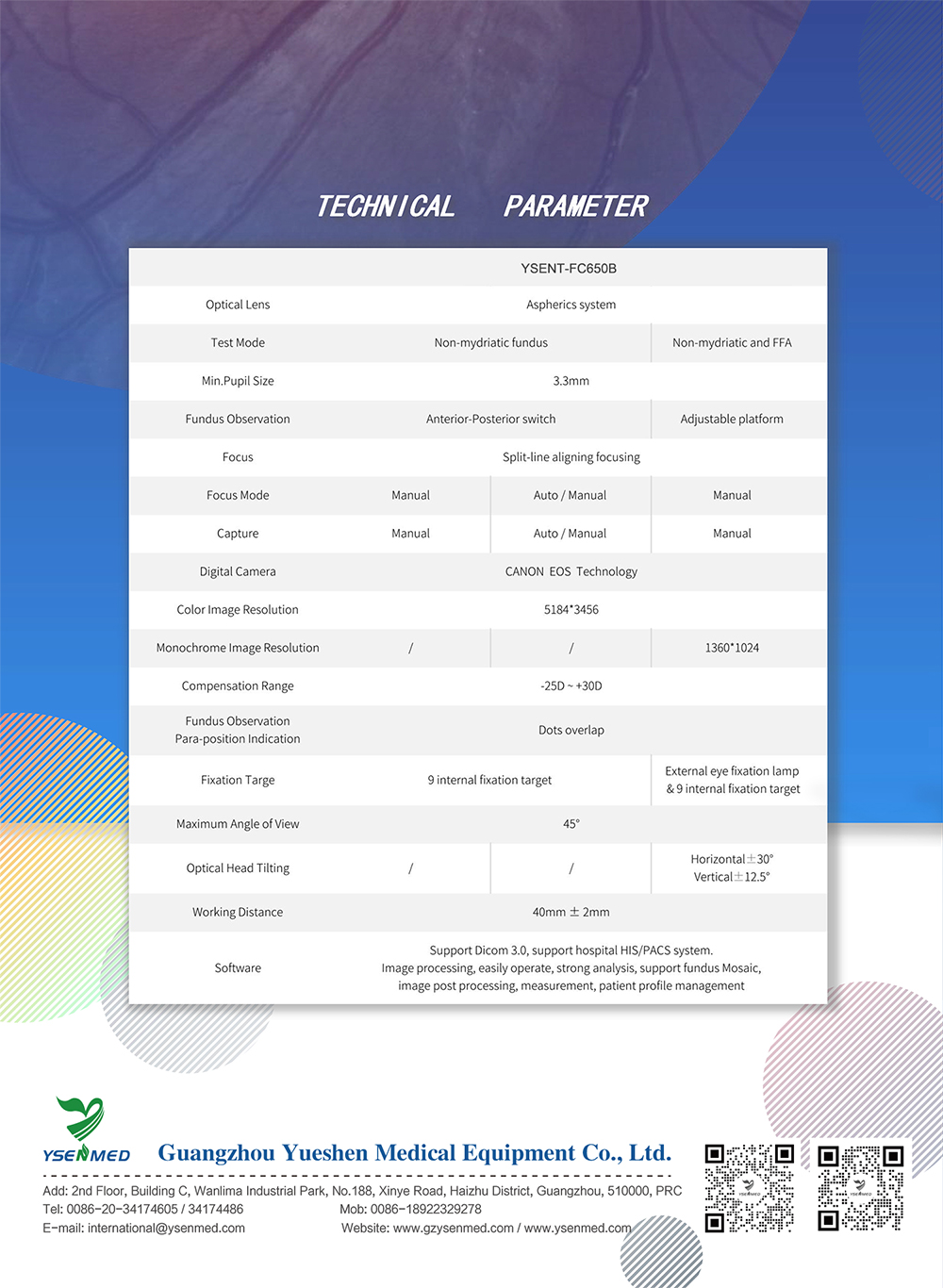 YSENT-FC650B Test Mode: Non-mydriatic and FFA
