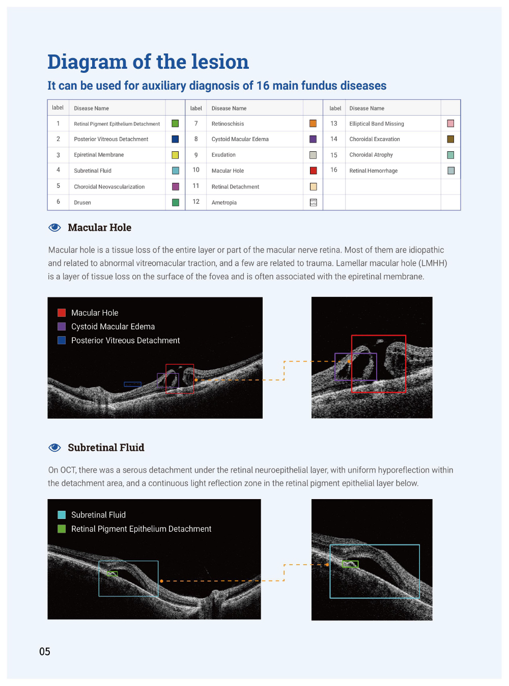 AI Image Analysis: Detects 16 major fundus lesions to support diagnosis.