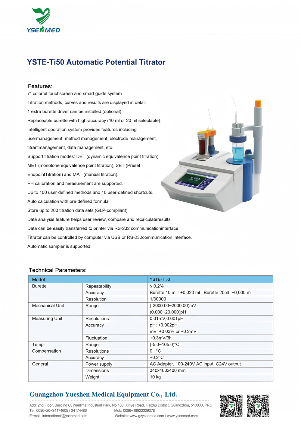 YSENMED Medical Laboratory Automatic Potential Titrator YSTE-Ti50