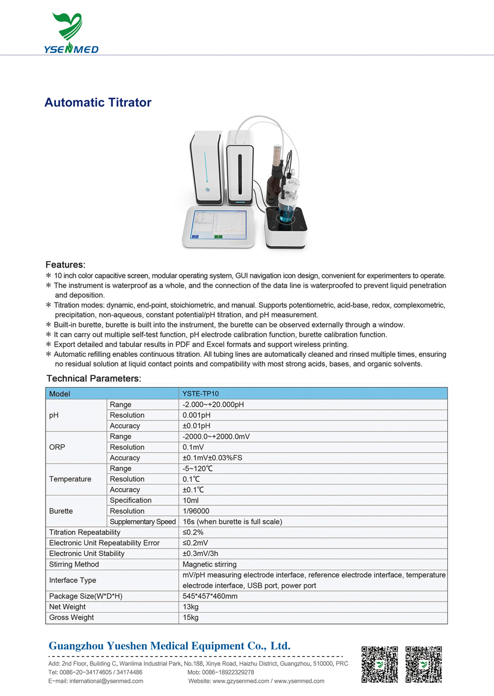 YSENMED Medical Laboratory Automatic Titrator YSTE-TP10