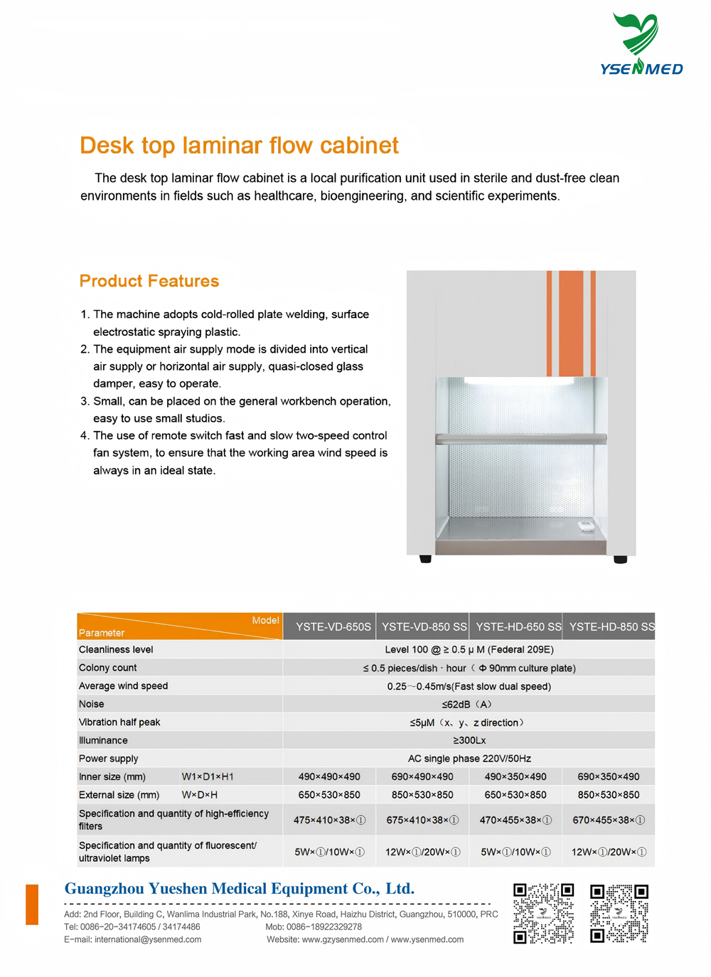 Лабораторный вертикальный ламинарный бокс YSTE-VD-650S с рабочей поверхностью из нержавеющей стали, настольный.