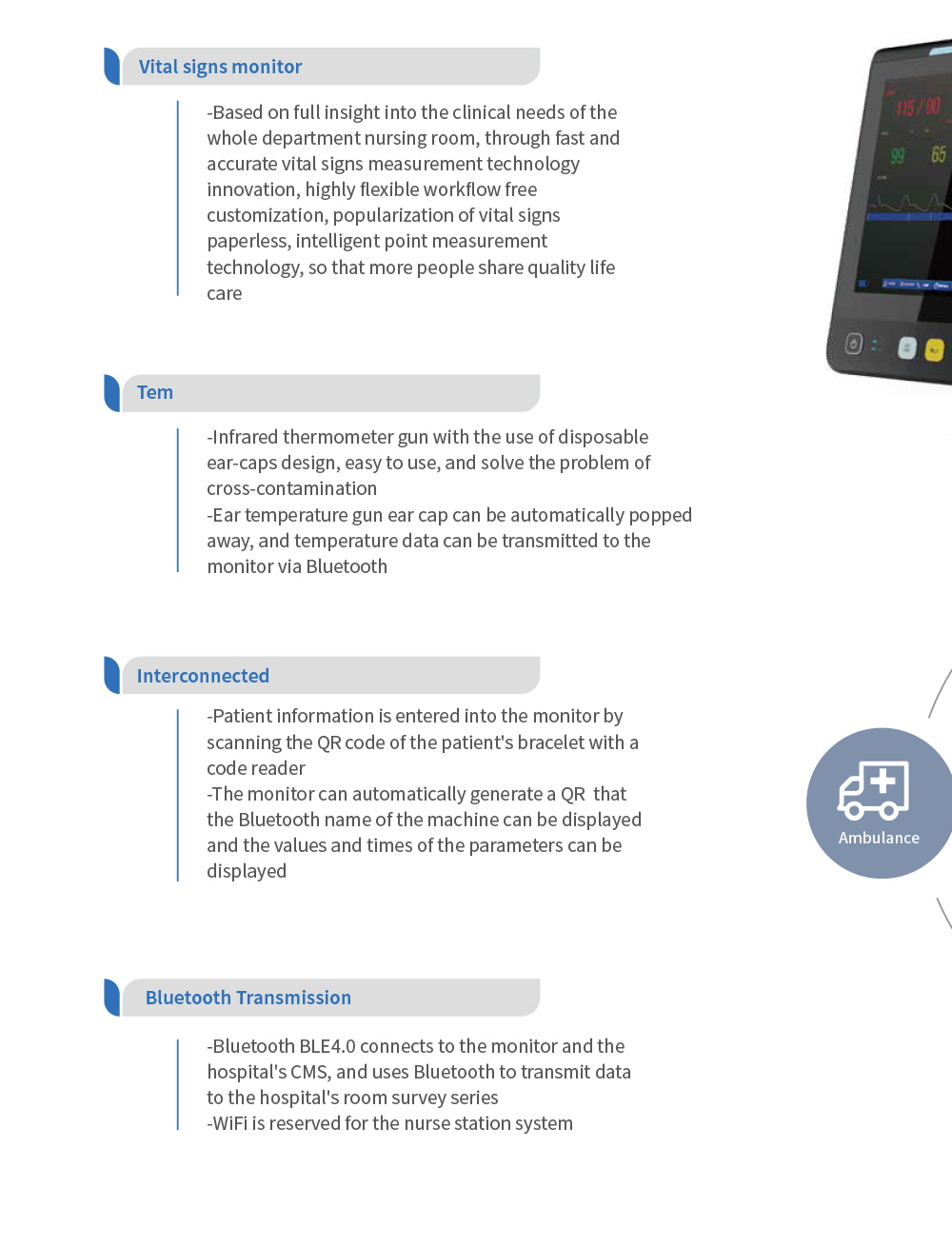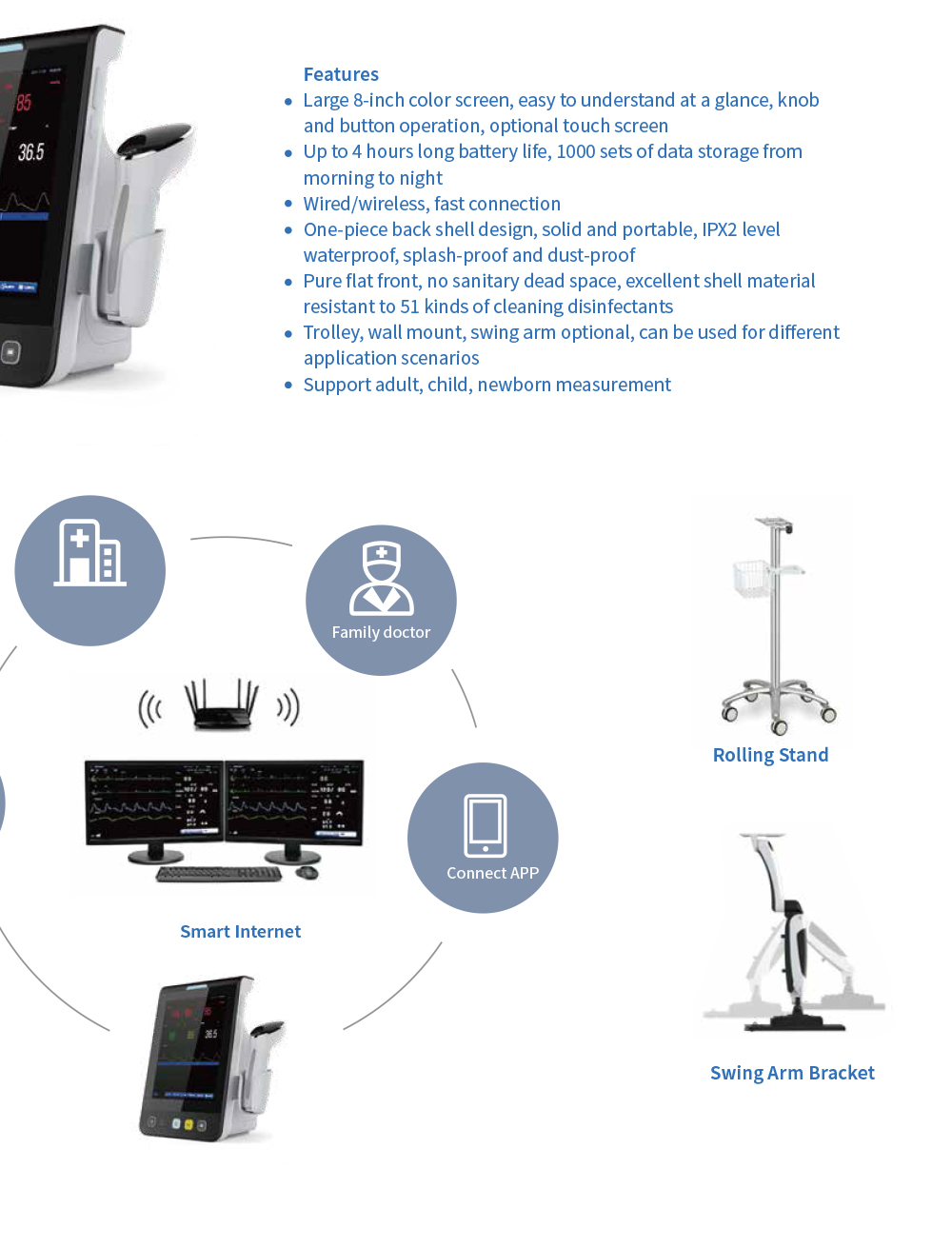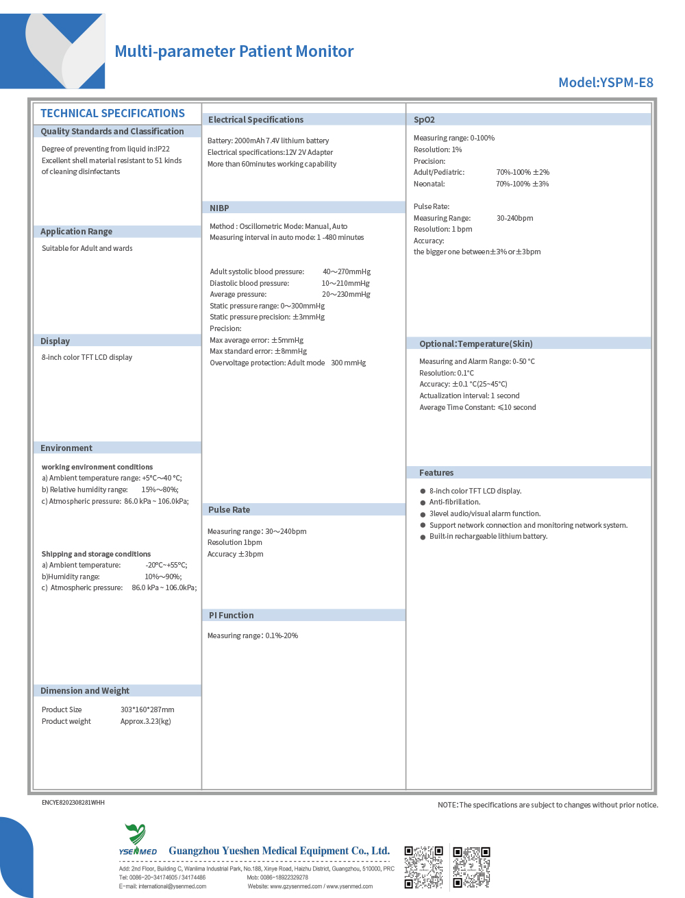 Медицинский монитор жизненно важных показателей YSPM-E8